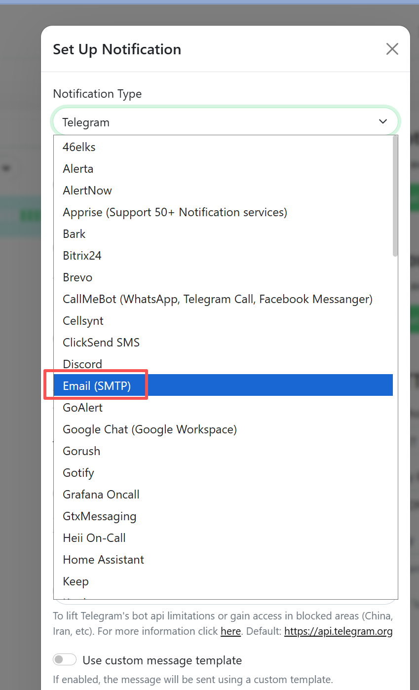 在 仪表盘/Dashboard 中对想要配置邮箱推送的探针进行编辑/Edit,选择邮箱类型