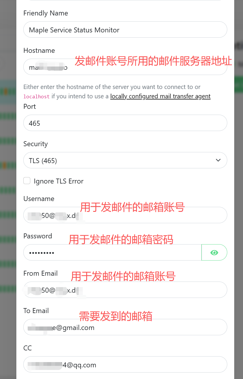 配置具体账号(具体邮件服务器地址各家可能略有不同,自行登录相应官网查找即可)